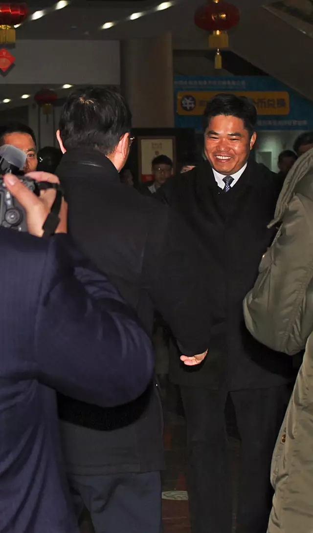 上午9点,市委书记盛秋平、代市长林毅抵达商贸城四区南门,一下车就给商户们发起春联,“生意兴荣”、“财源广进”讨喜的祝词引得人们眉开眼笑。
