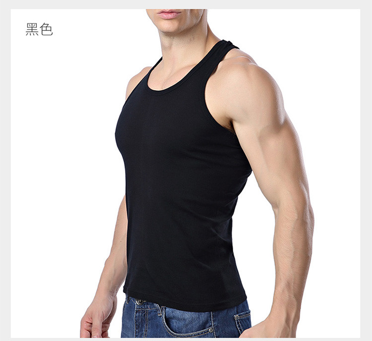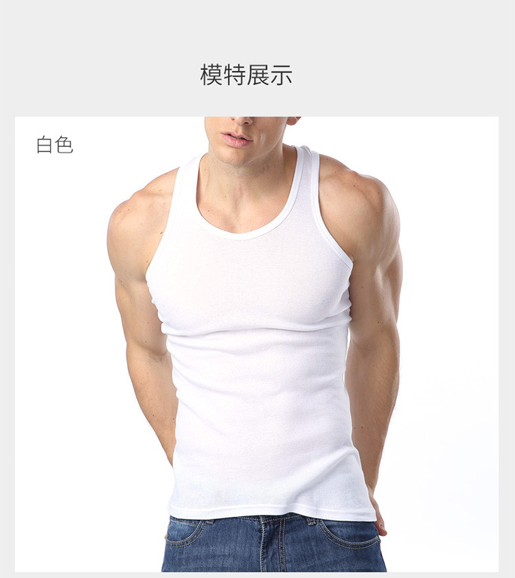 男士纯色吸汗运动纯棉罗纹圆领背心