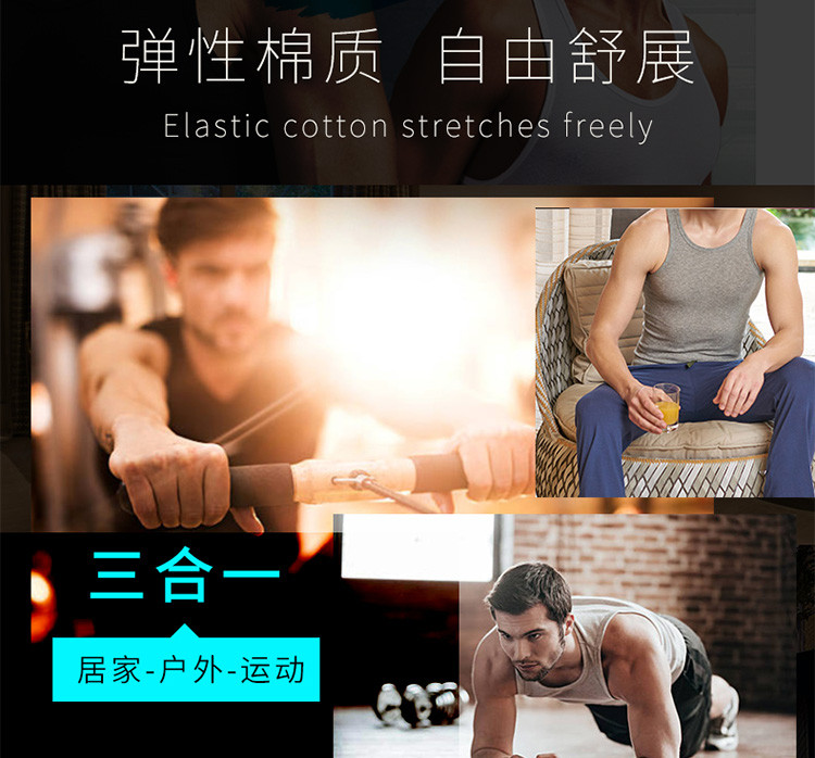 2件100%纯棉百搭舒适男士汗衫打底背心T恤