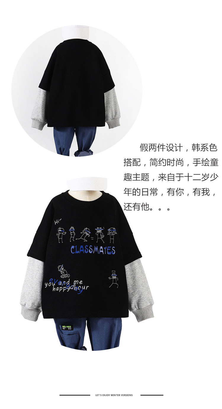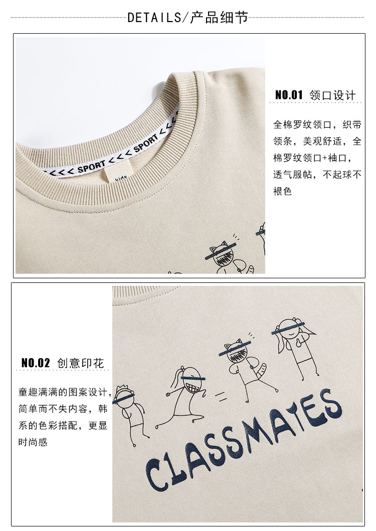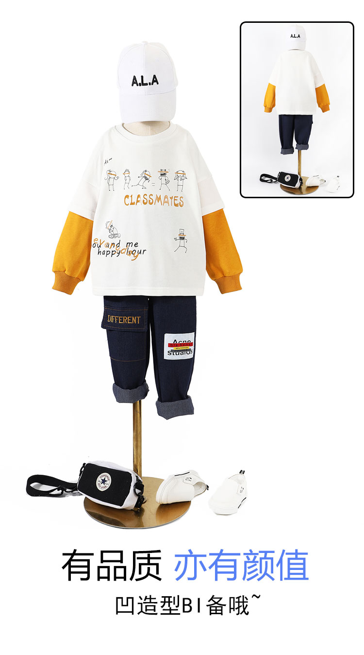 浪莎童装男童卫衣儿童春秋款长袖2021新款中大童打底衫韩版潮t恤