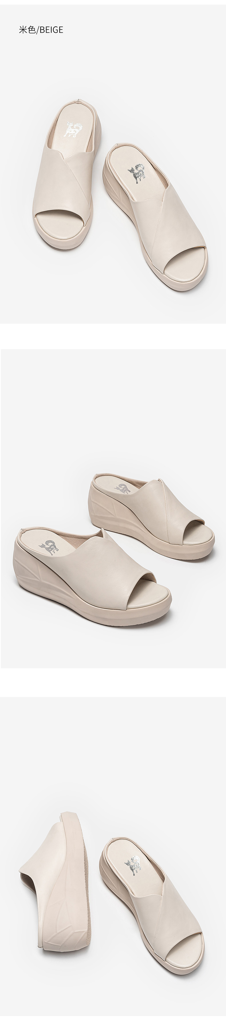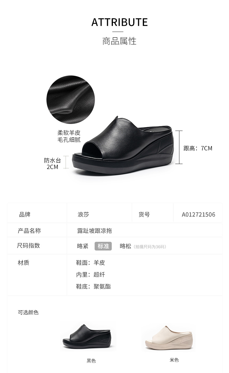 浪莎坡跟凉拖女外穿2021春新款夏天时尚高跟真皮懒人厚底鱼嘴拖鞋