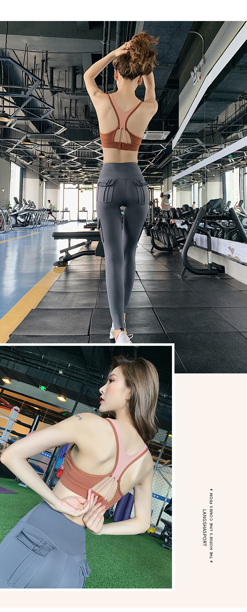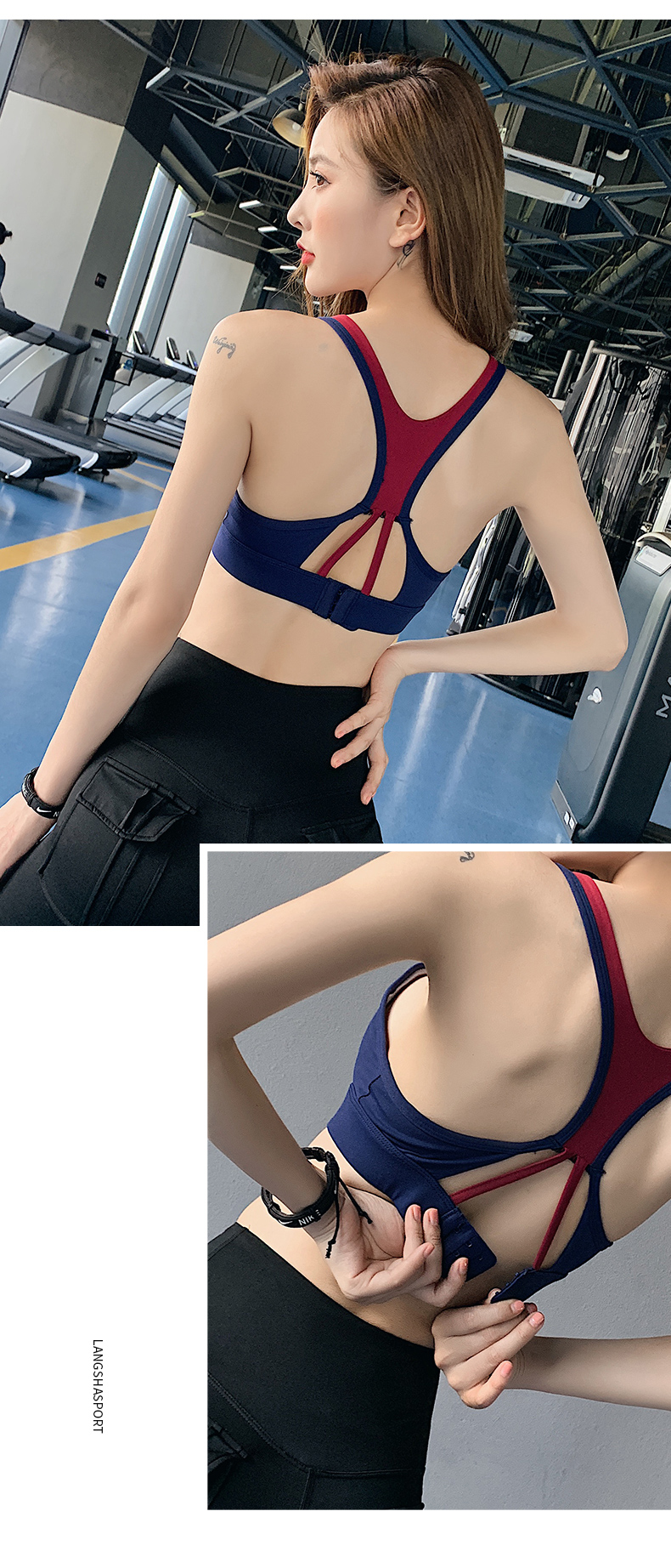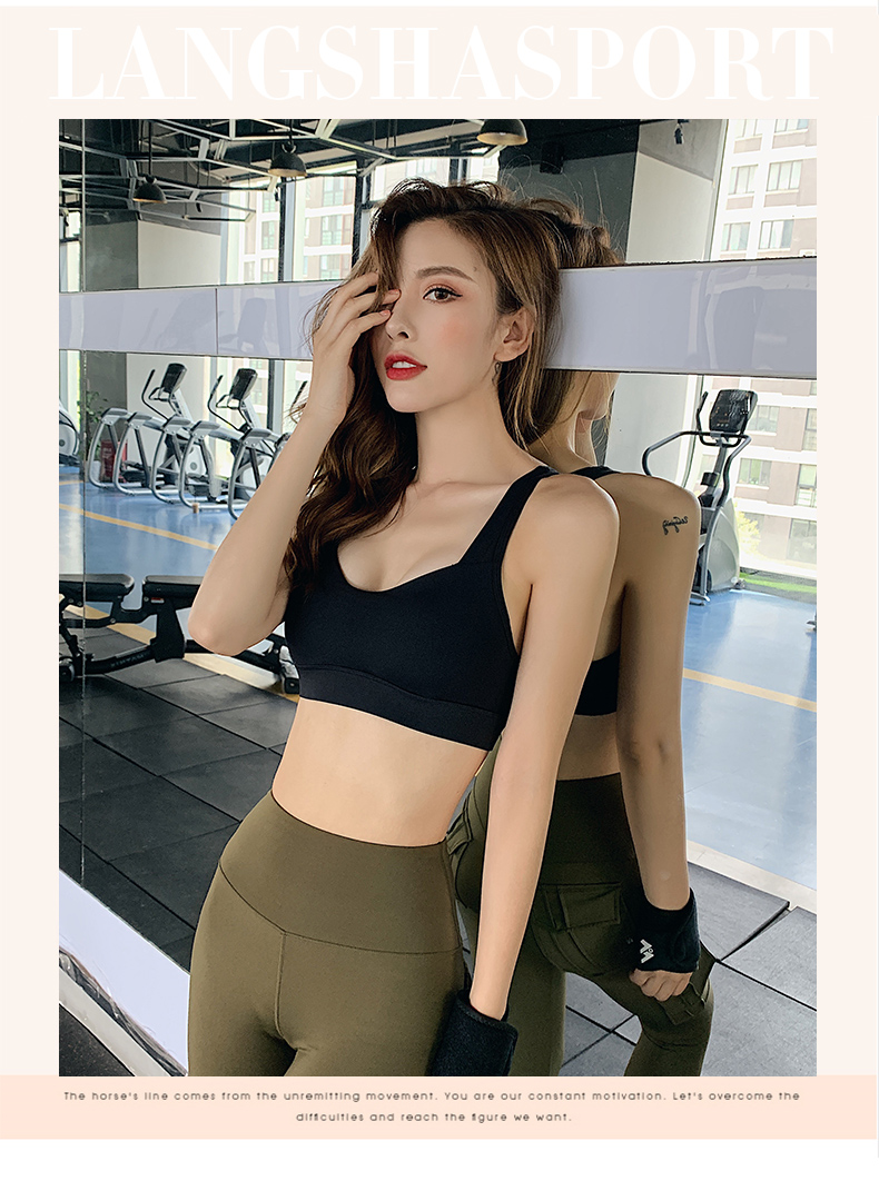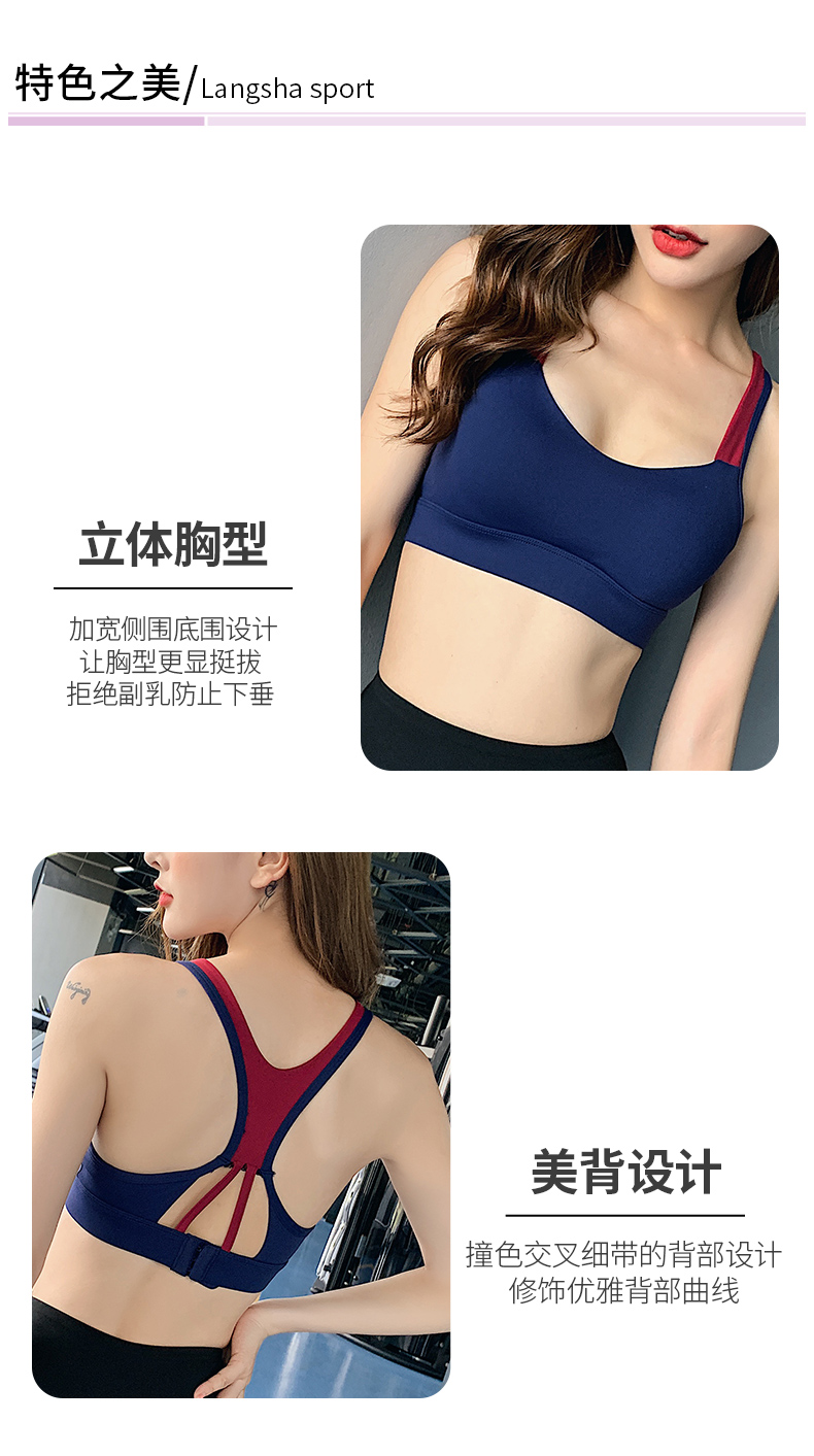 浪莎运动内衣女搭扣防震跑步聚拢定型美背瑜伽背心一体式健身文胸