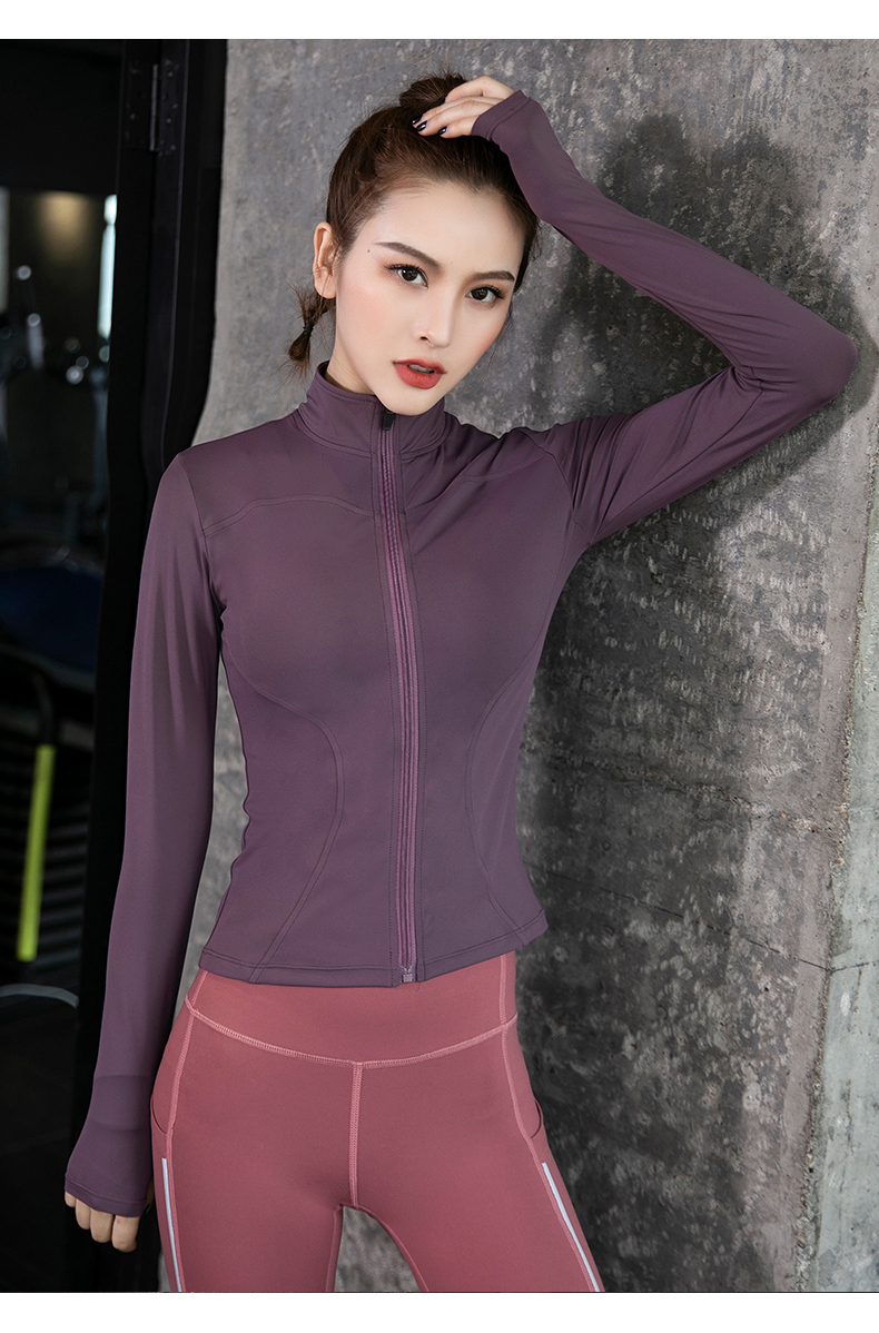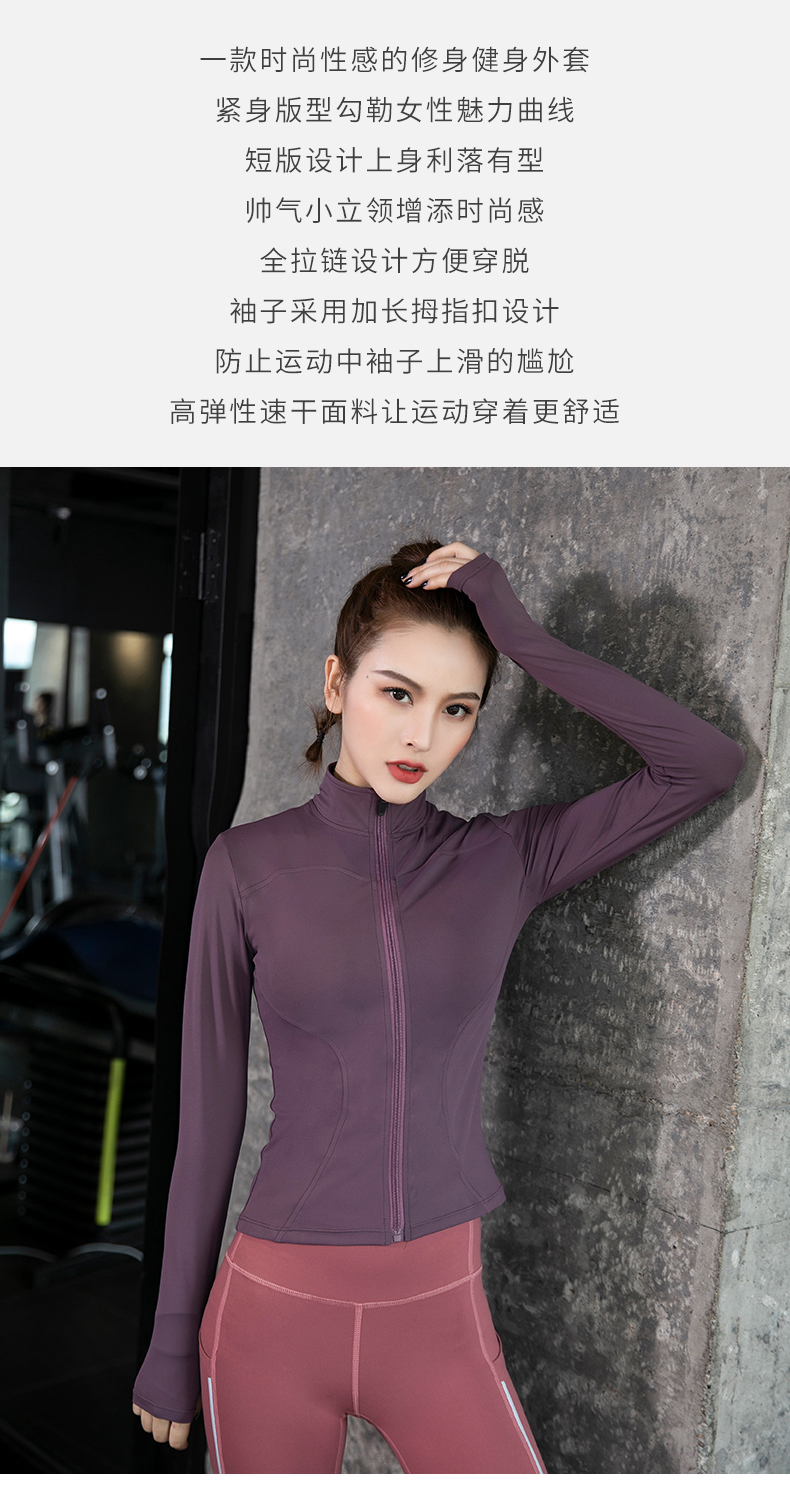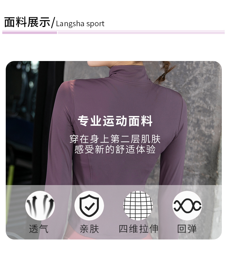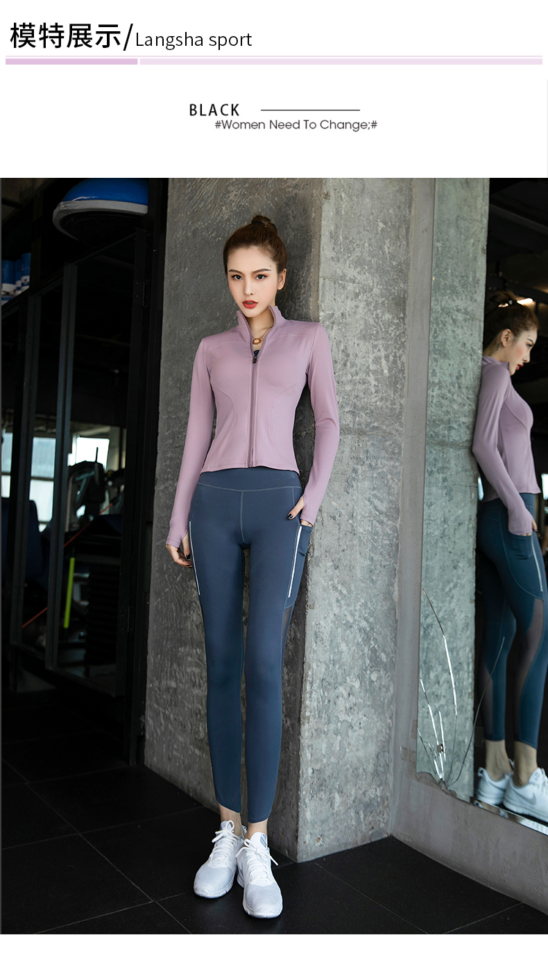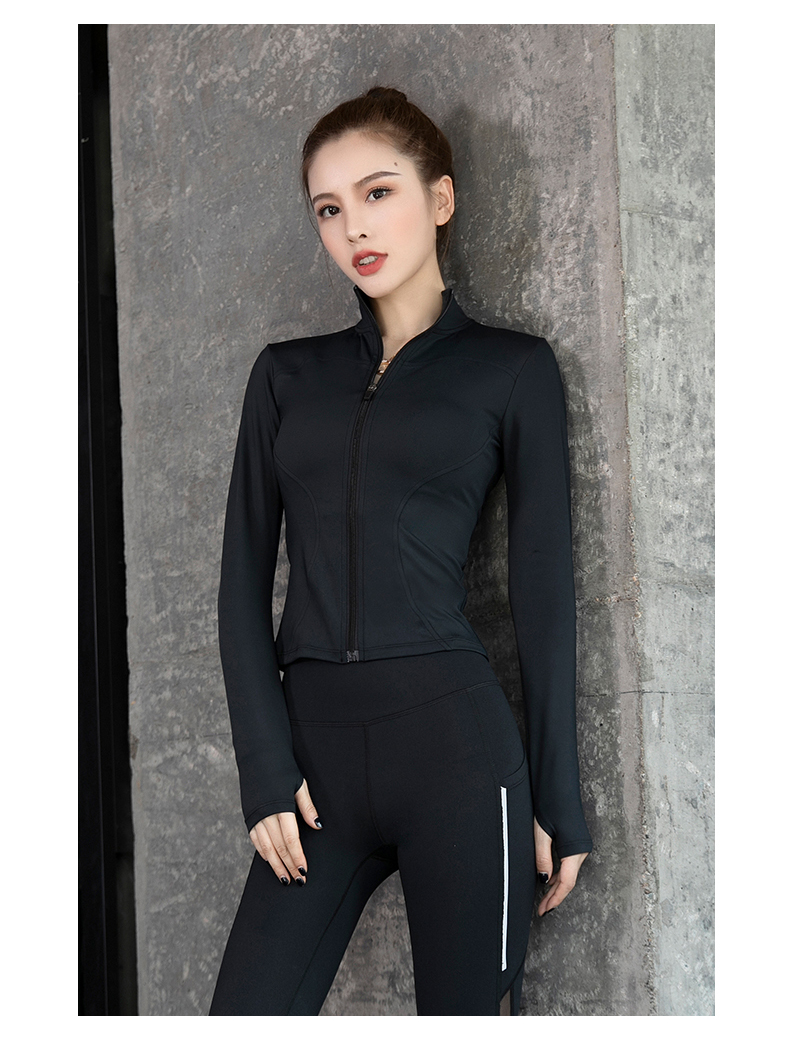 浪莎健身衣女紧身跑步速干拉链秋冬户外立领黑色瑜伽长袖运动外套
