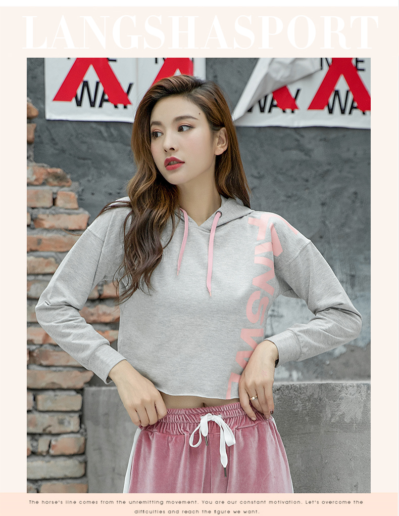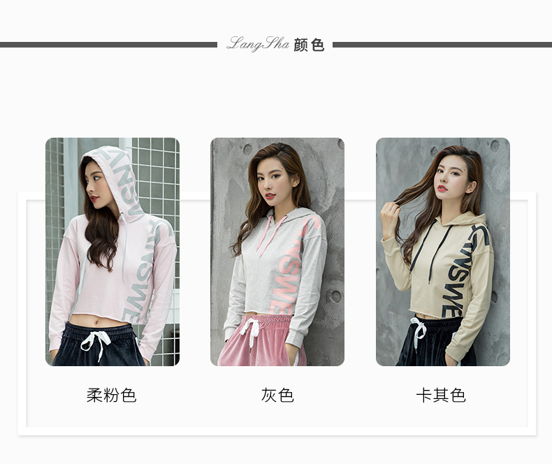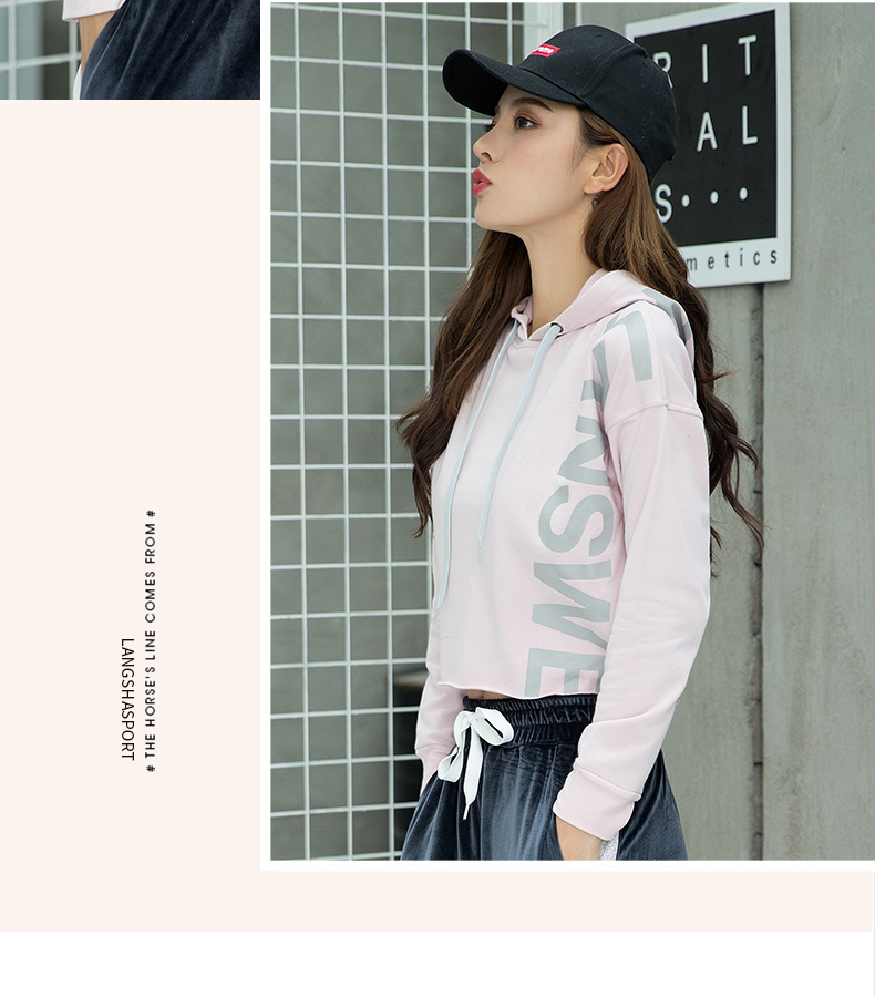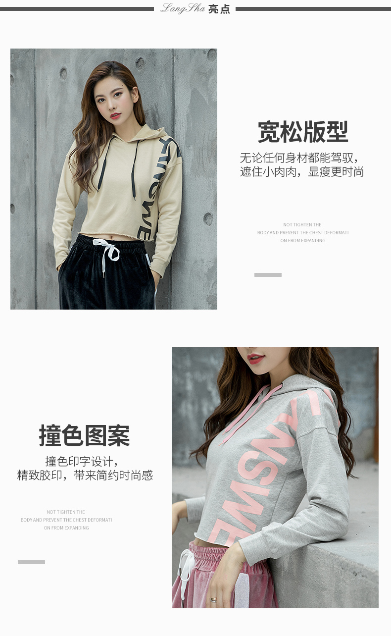 特价浪莎运动卫衣女宽松连帽休闲纯棉套头衫春秋瑜伽服健身长袖