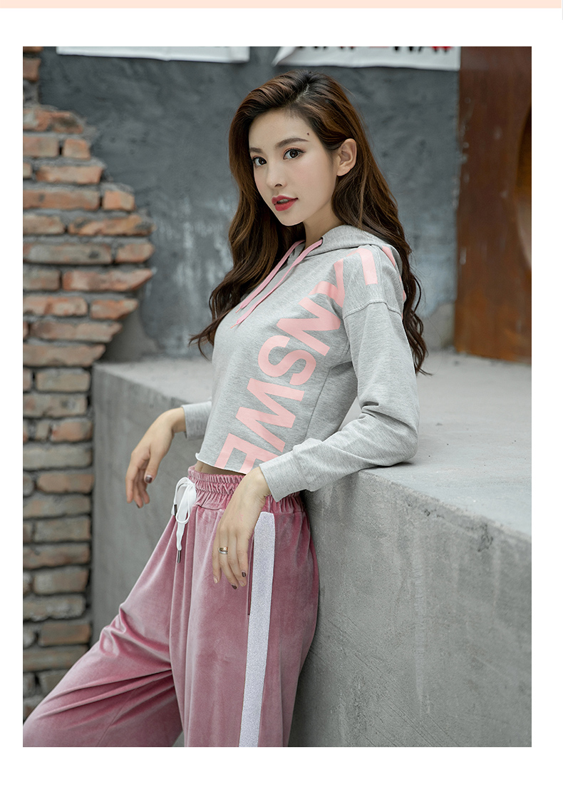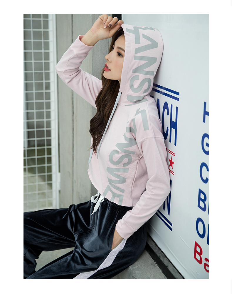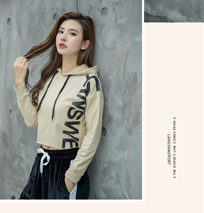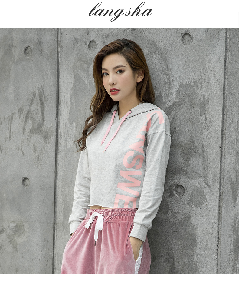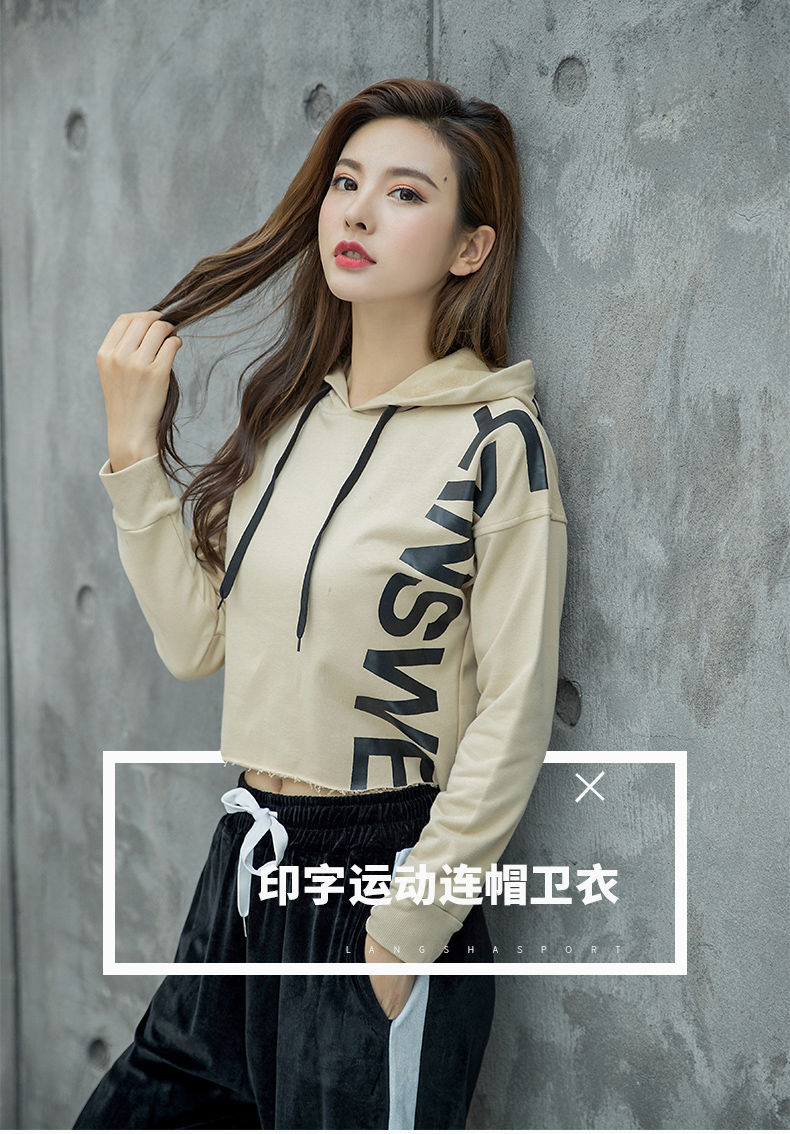 特价浪莎运动卫衣女宽松连帽休闲纯棉套头衫春秋瑜伽服健身长袖