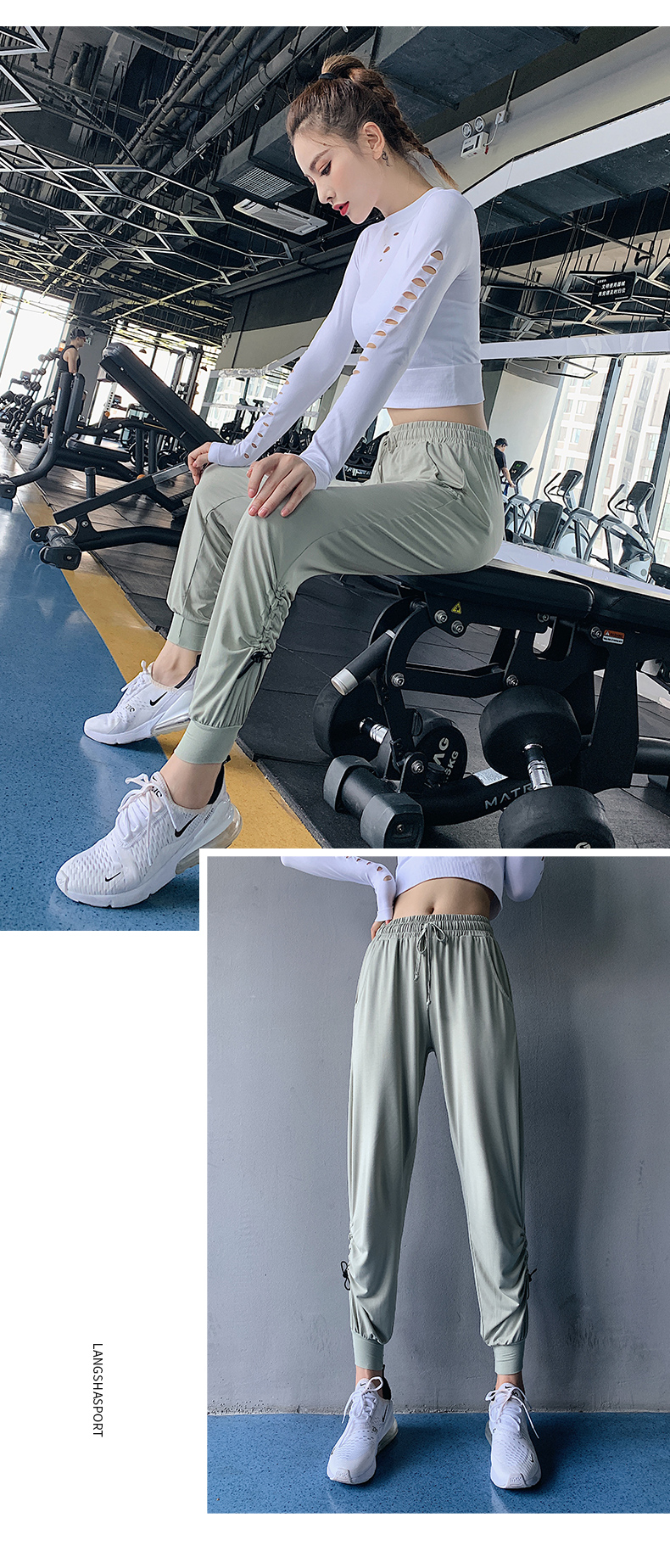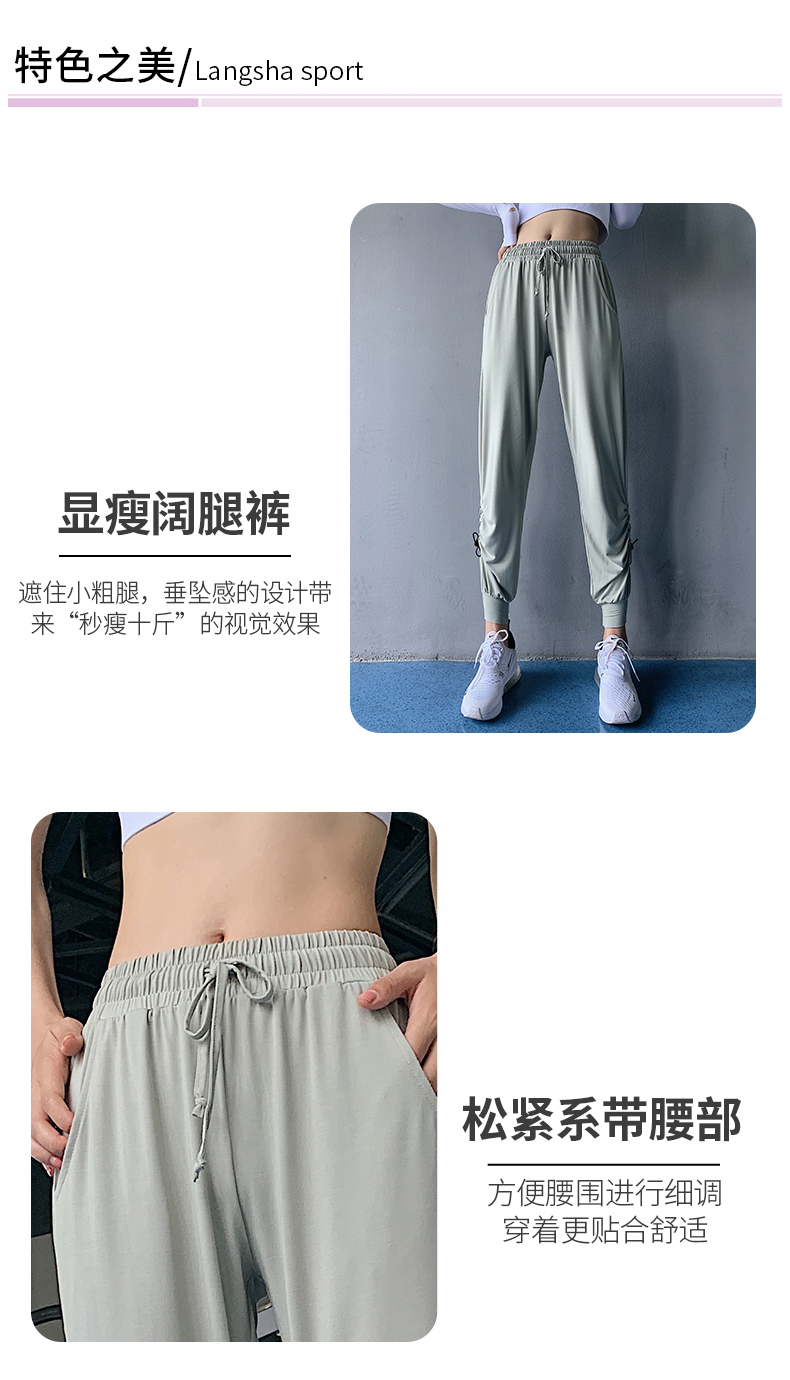 特价浪莎健身裤女宽松束脚收口跑步舞蹈薄款速干高腰瑜伽裤运动裤