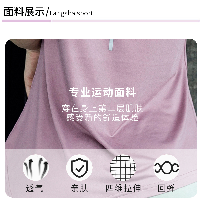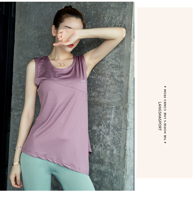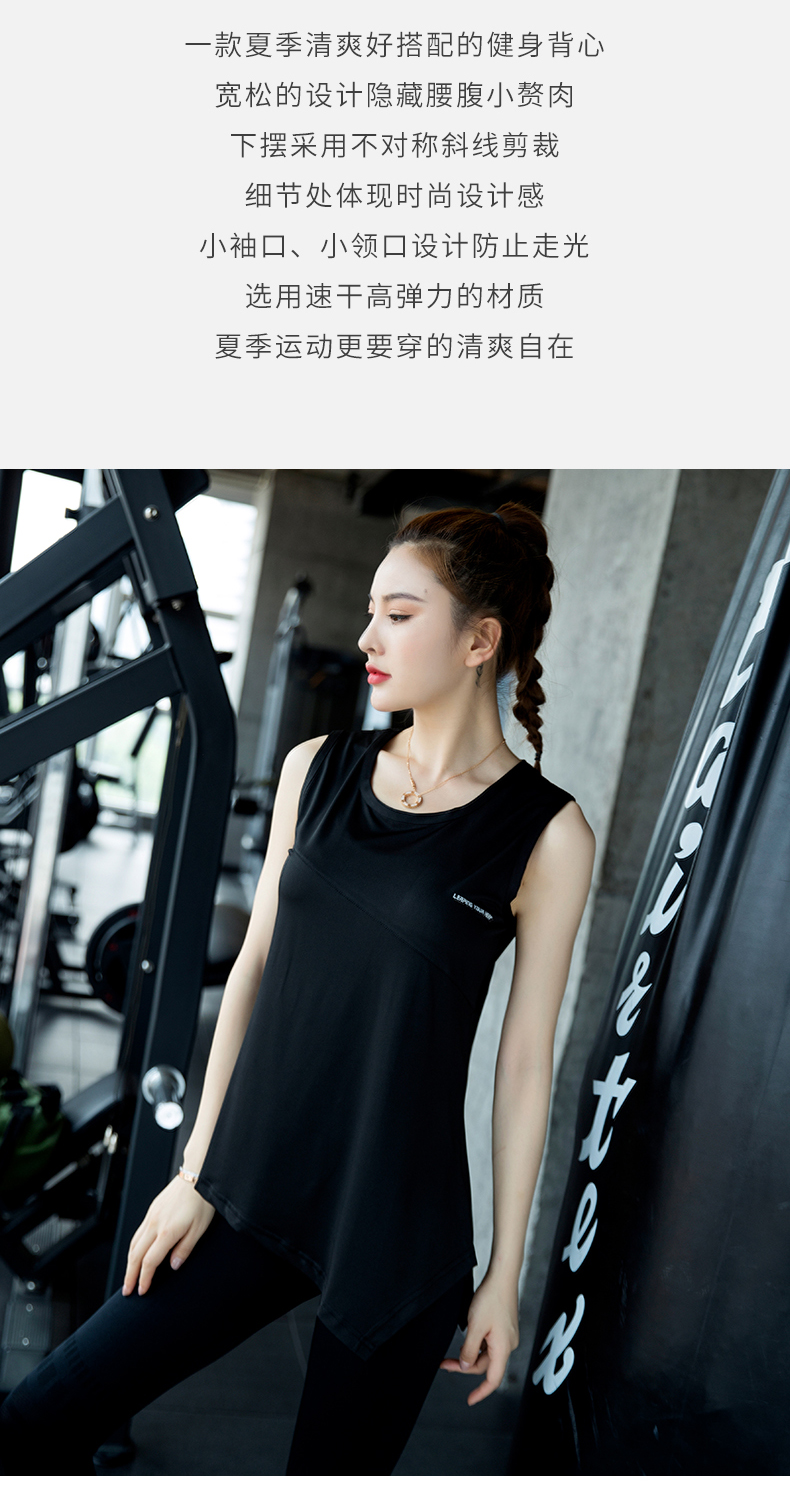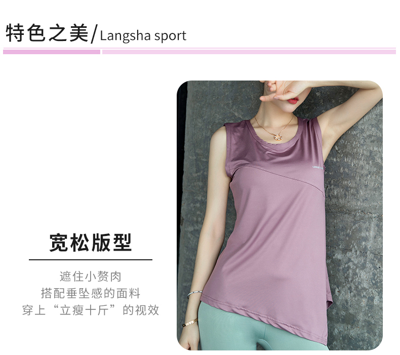 浪莎运动背心女宽松外穿瑜伽上衣无袖速干T恤跑步时尚长健身罩衫
