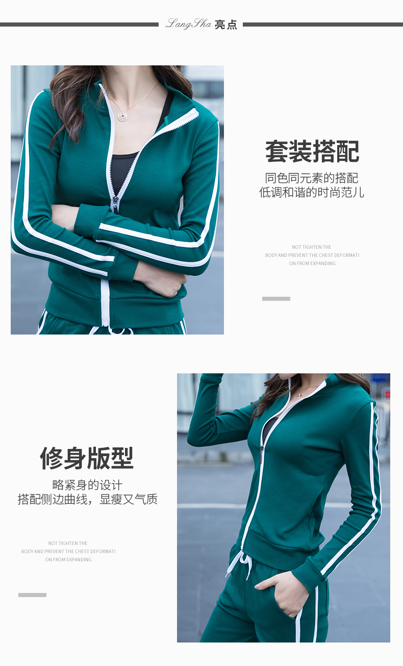 浪莎瑜伽服速干衣宽松初学者专业晨跑两件套健身房跑步运动套装女