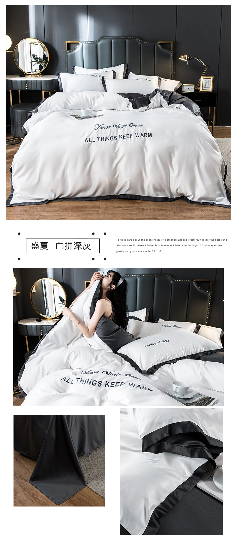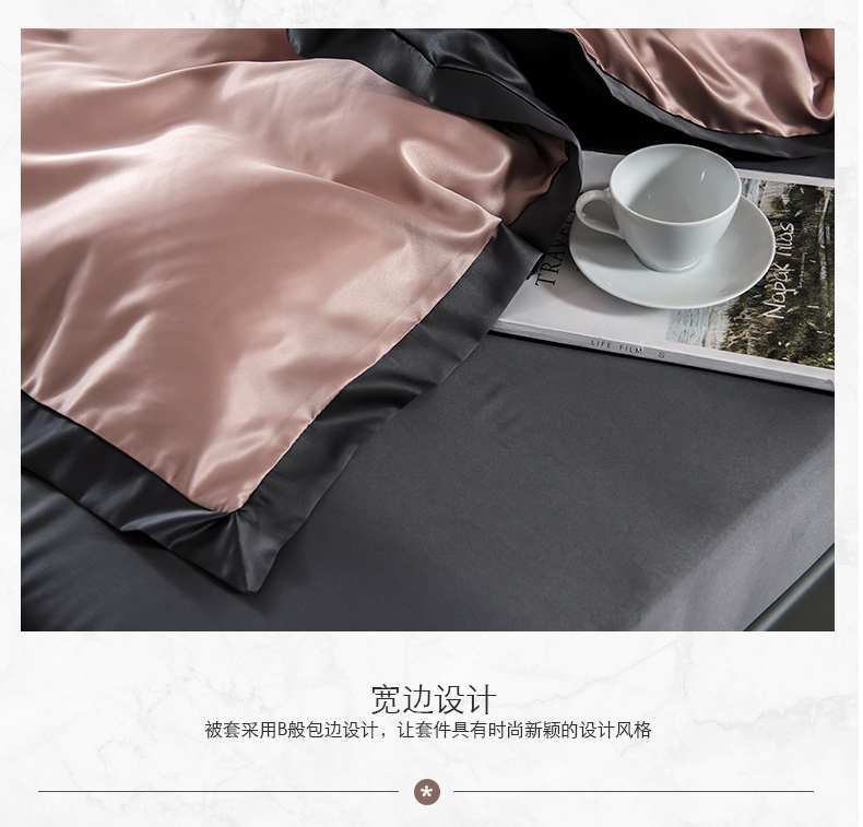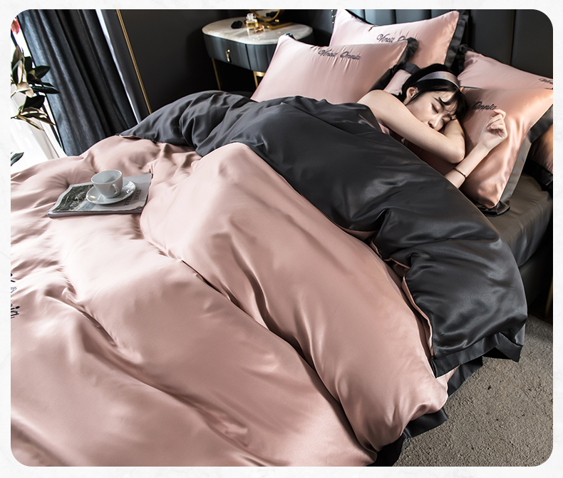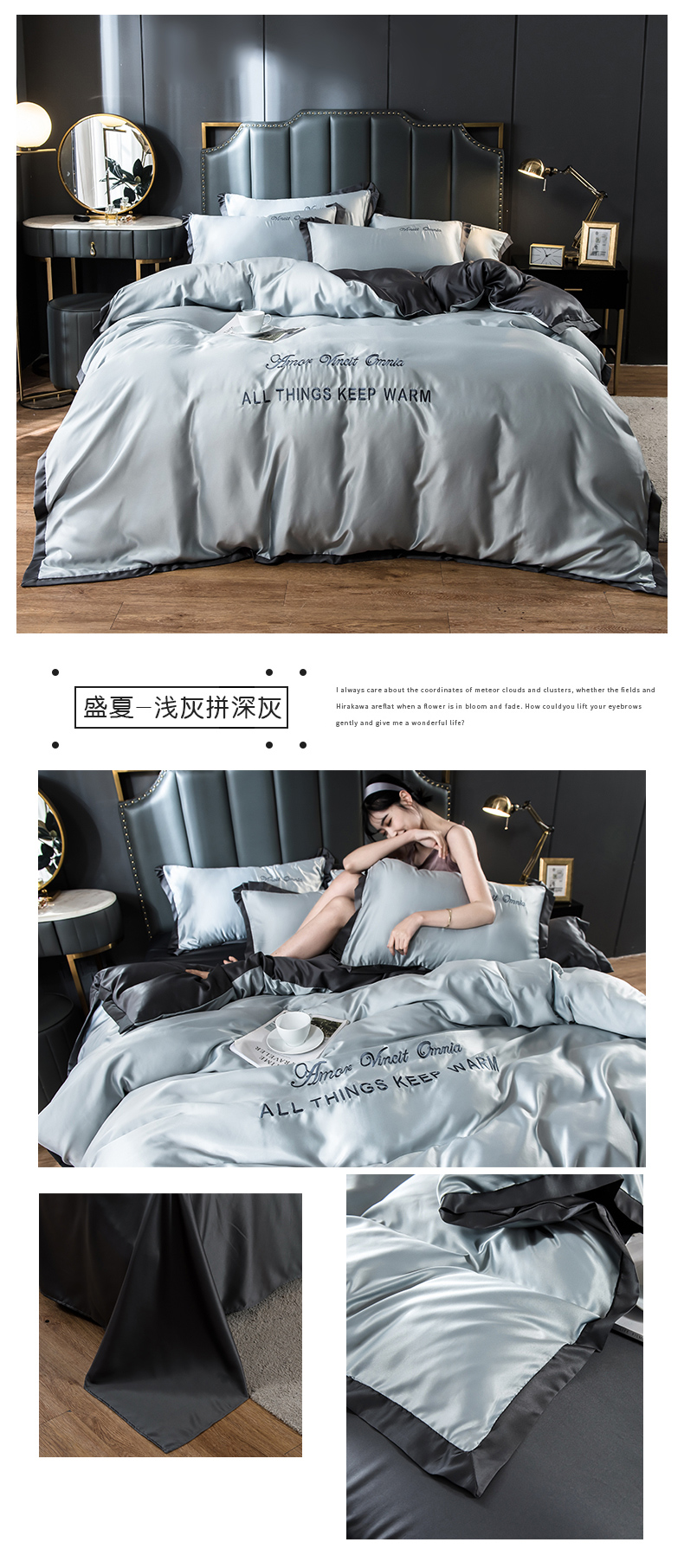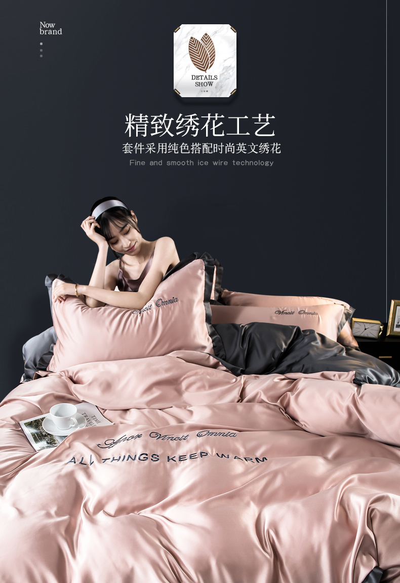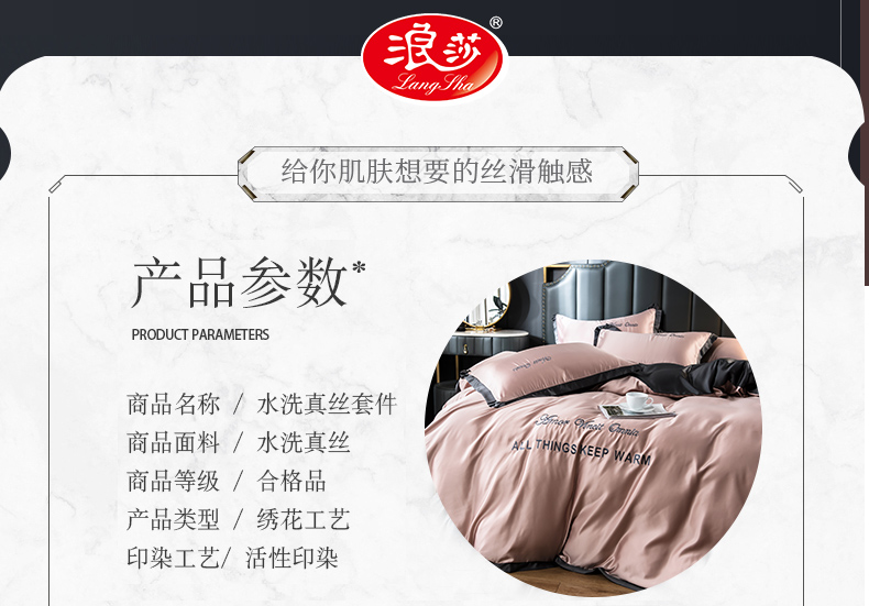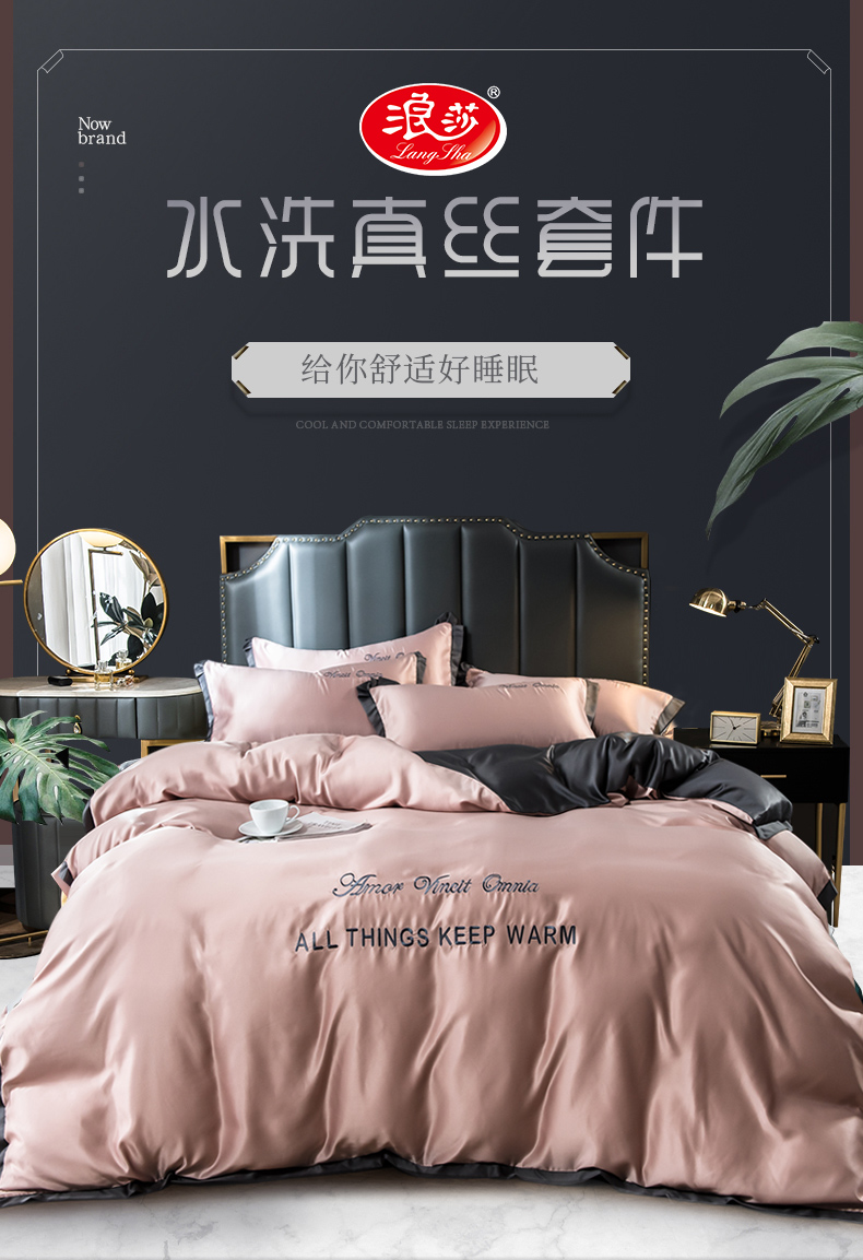 浪莎四件套水洗真丝北欧风被套床笠床单裸睡冰丝春夏秋季床上用品