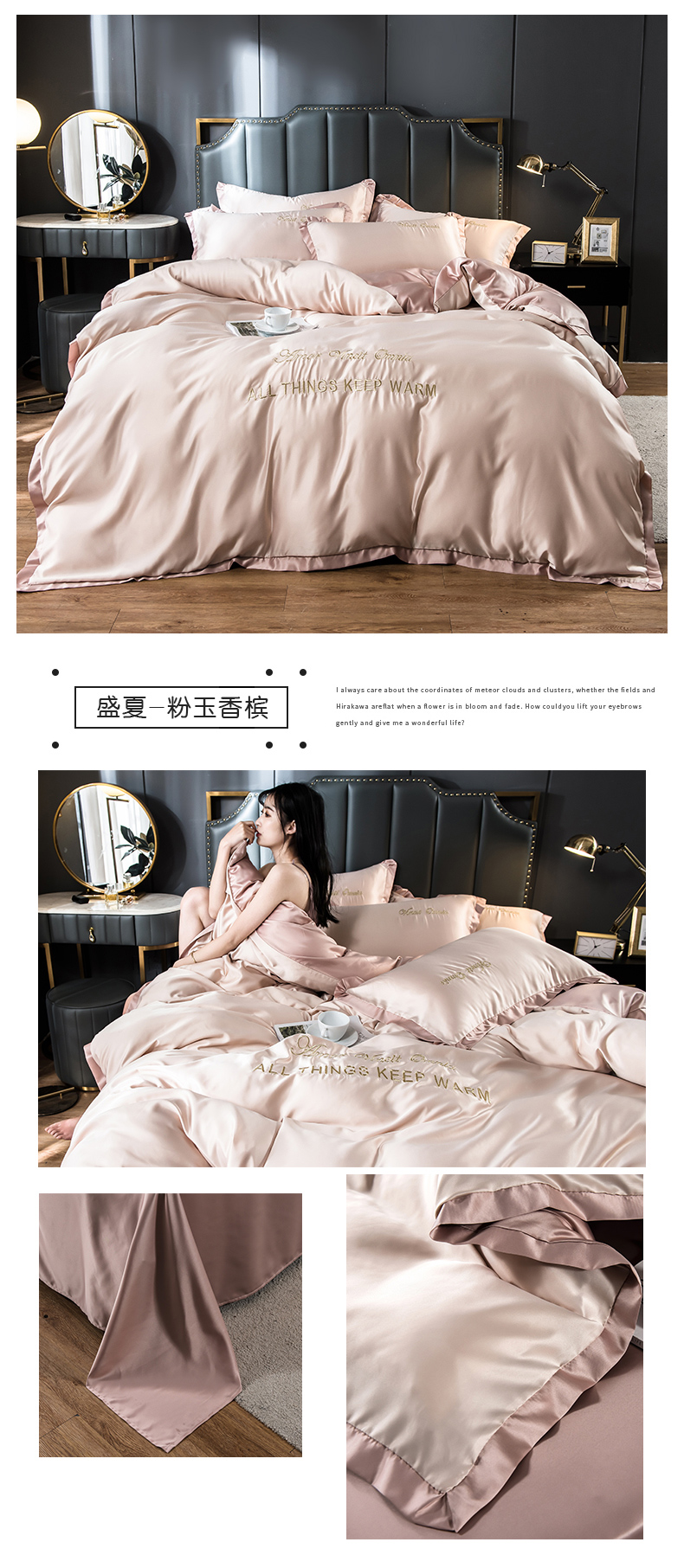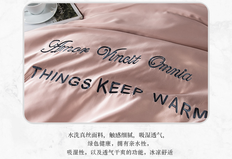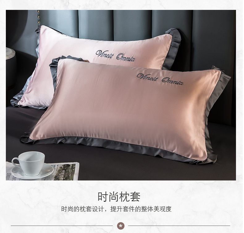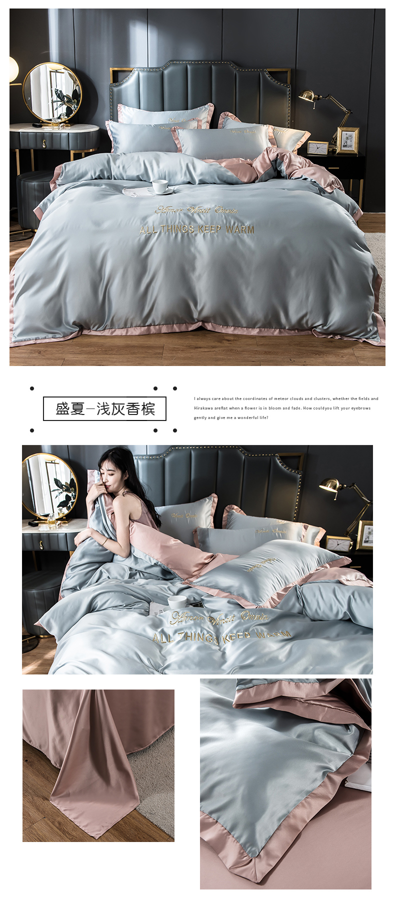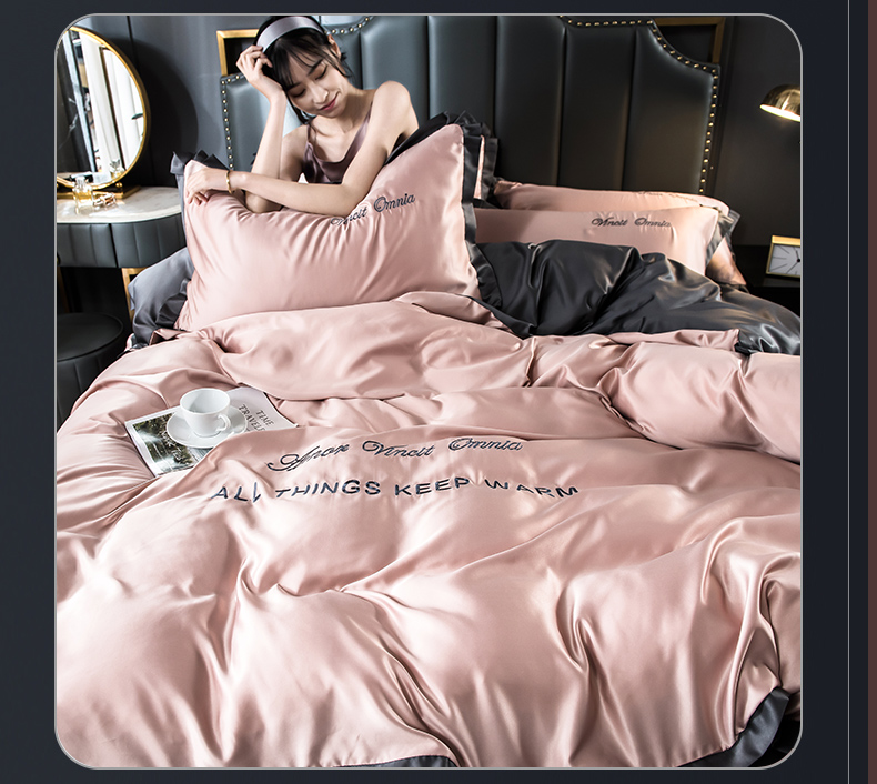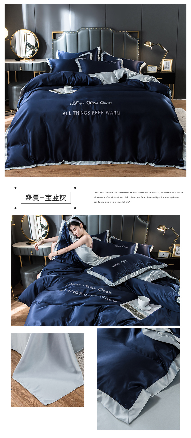 浪莎四件套水洗真丝北欧风被套床笠床单裸睡冰丝春夏秋季床上用品