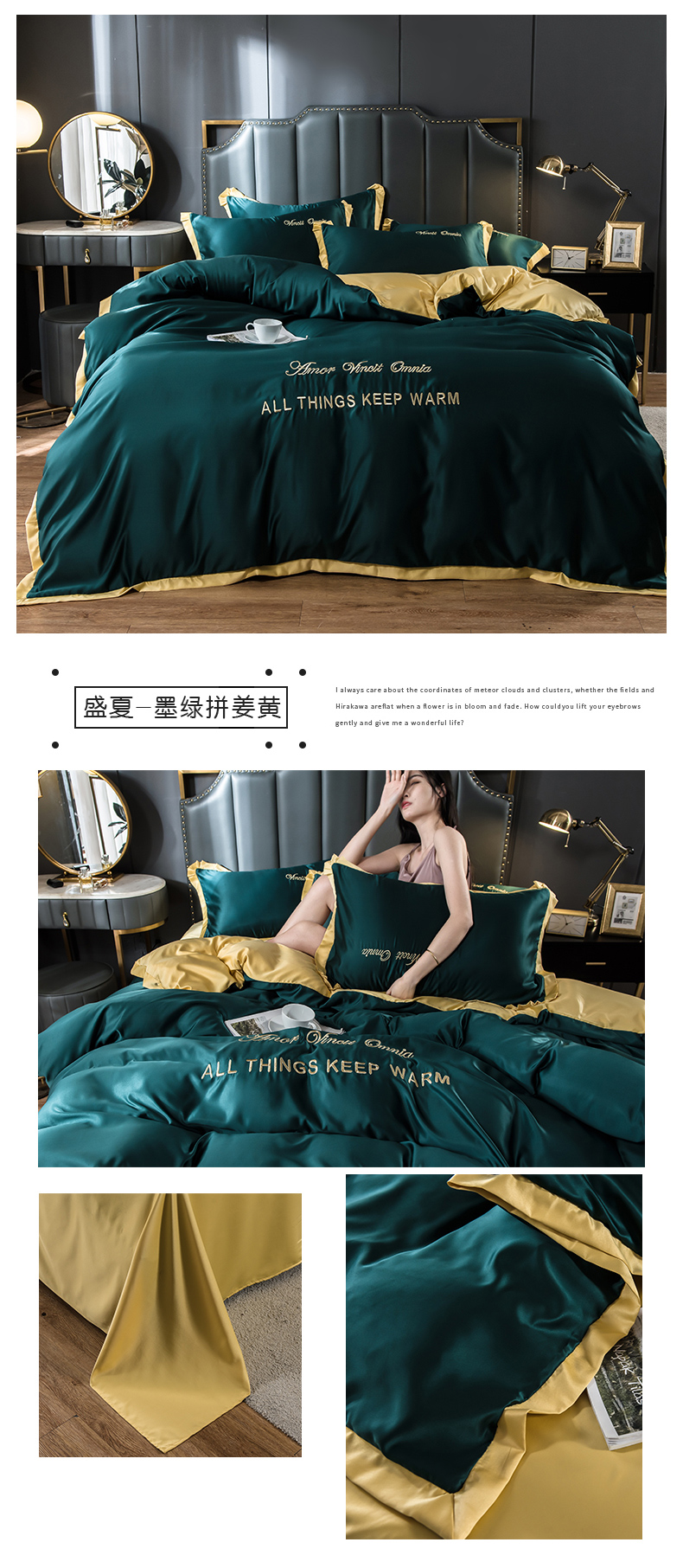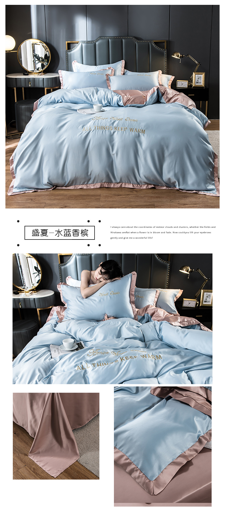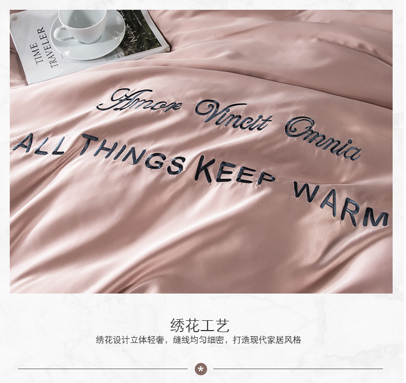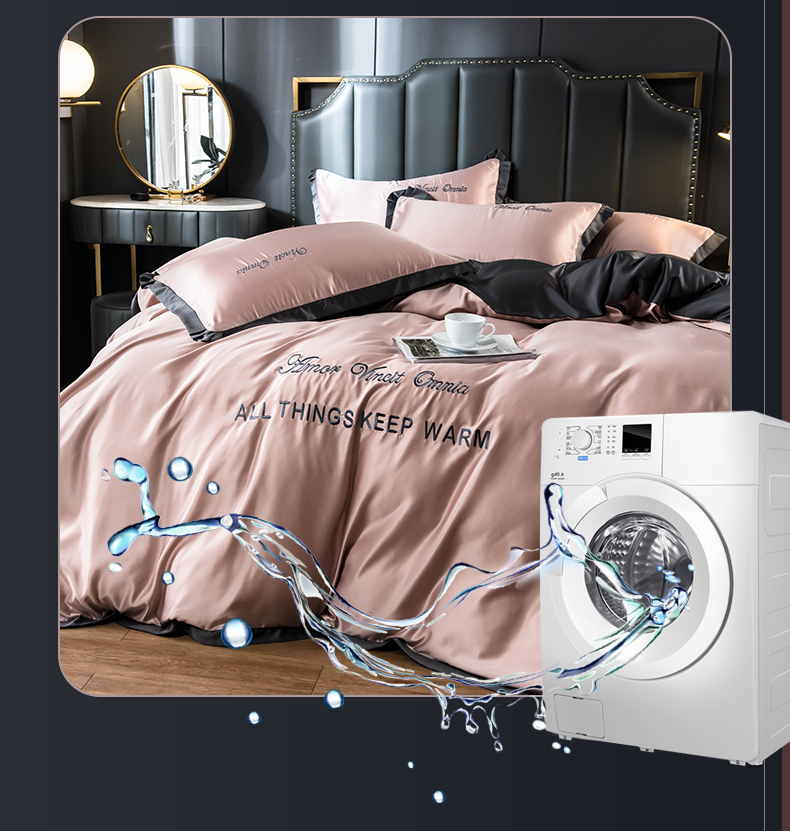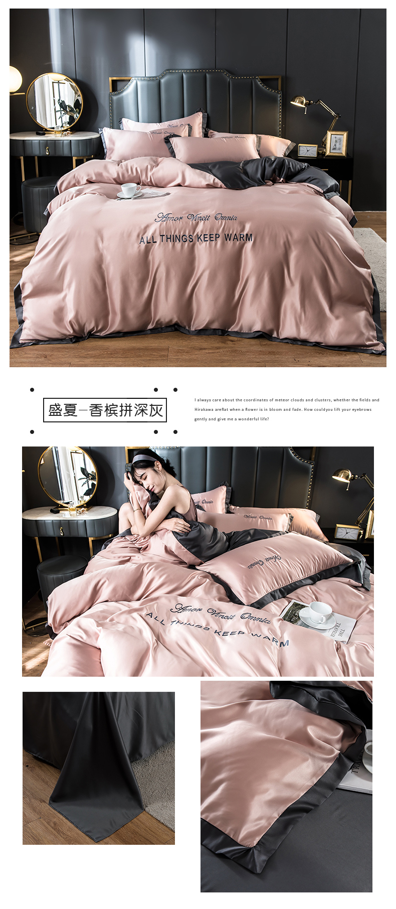 浪莎四件套水洗真丝北欧风被套床笠床单裸睡冰丝春夏秋季床上用品