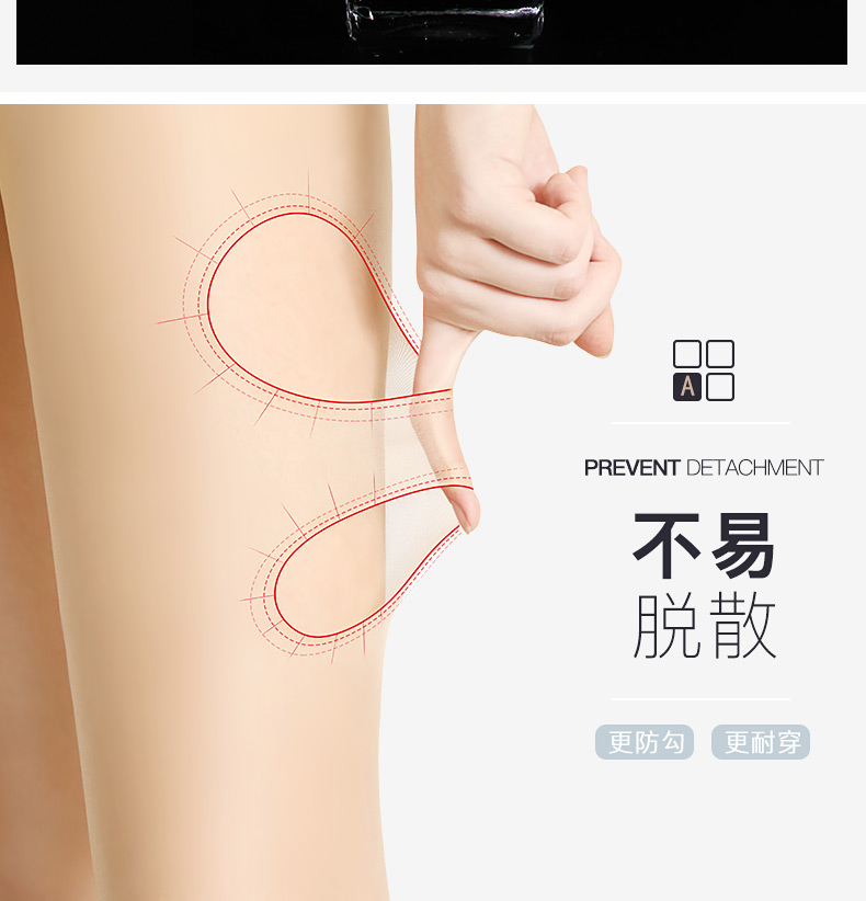 浪莎丝袜女防脱散菠萝袜 防勾丝连裤袜夏天黑肉色长筒丝袜薄款