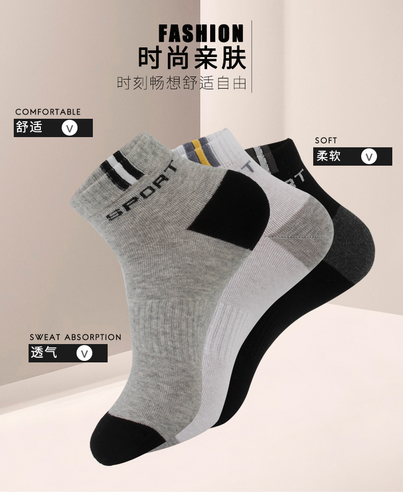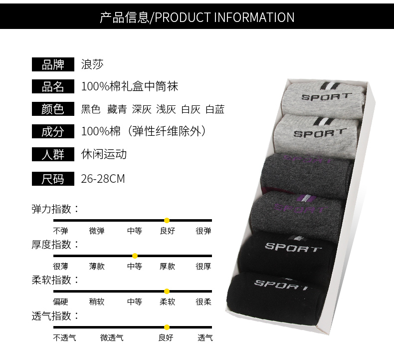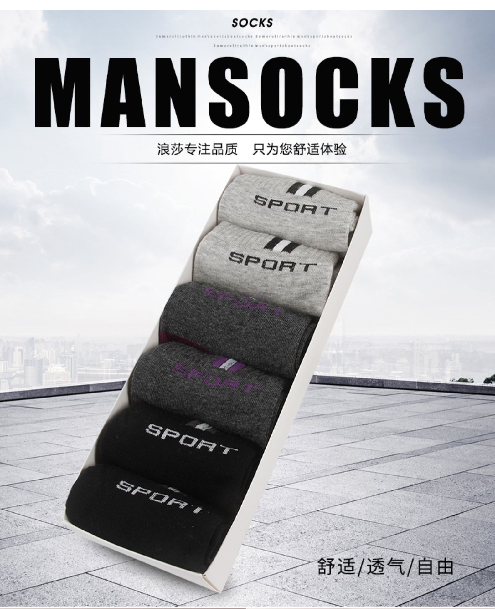 浪莎袜子男士纯棉中筒袜秋季薄款吸汗运动篮球全棉春秋透气短袜潮