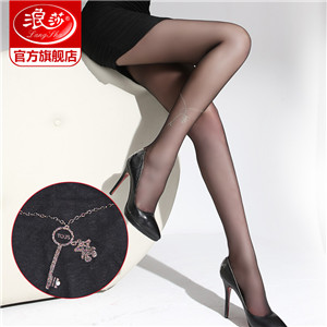 浪莎提花丝袜女 性感时尚假纹身刺青连裤袜薄款 防勾丝黑丝袜
