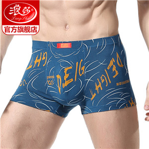 浪莎内裤 男士平角裤中腰青年春夏透气U凸印花四角短裤衩男