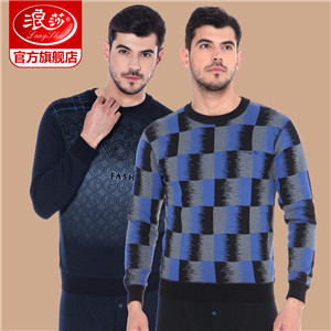 浪莎时尚加绒加厚保暖内衣套装男士中年格子秋衣秋裤冬季打底防寒