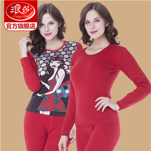 浪莎保暖内衣女士加厚加绒保暖衣冬天大红本命年秋衣秋裤