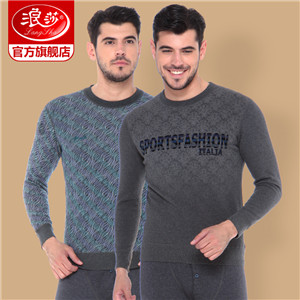 浪莎条纹个性保暖内衣男士加厚加绒中老年人爸爸冬季秋衣秋裤套装