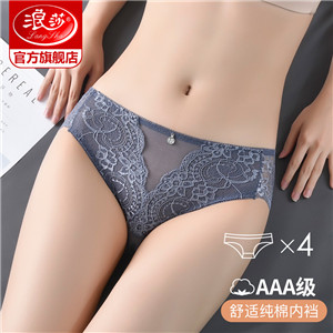 浪莎蕾丝内裤女士性惑春夏款纯棉底裆性感无痕透气镂空三角短裤头
