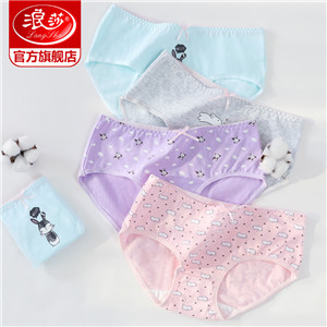 浪莎女士内裤女三角裤中腰春夏少女纯棉面料透气全棉日系女生裤衩