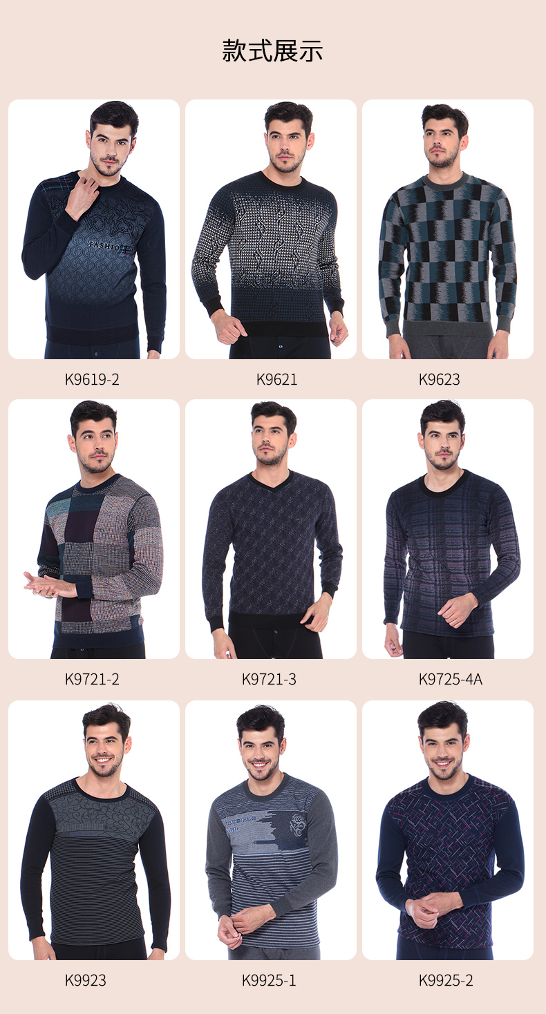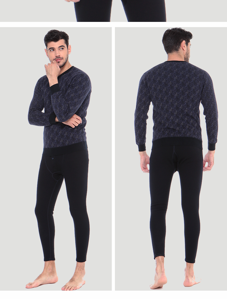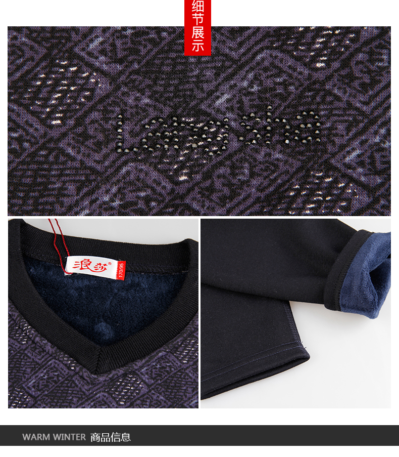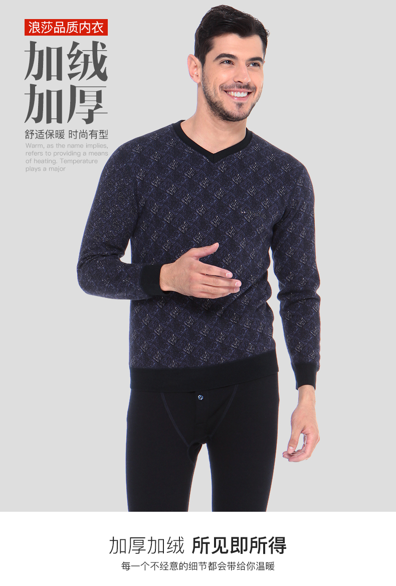 浪莎时尚加绒加厚保暖内衣套装男士中年格子秋衣秋裤冬季打底防寒