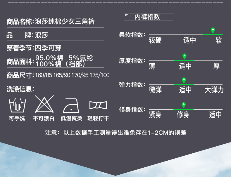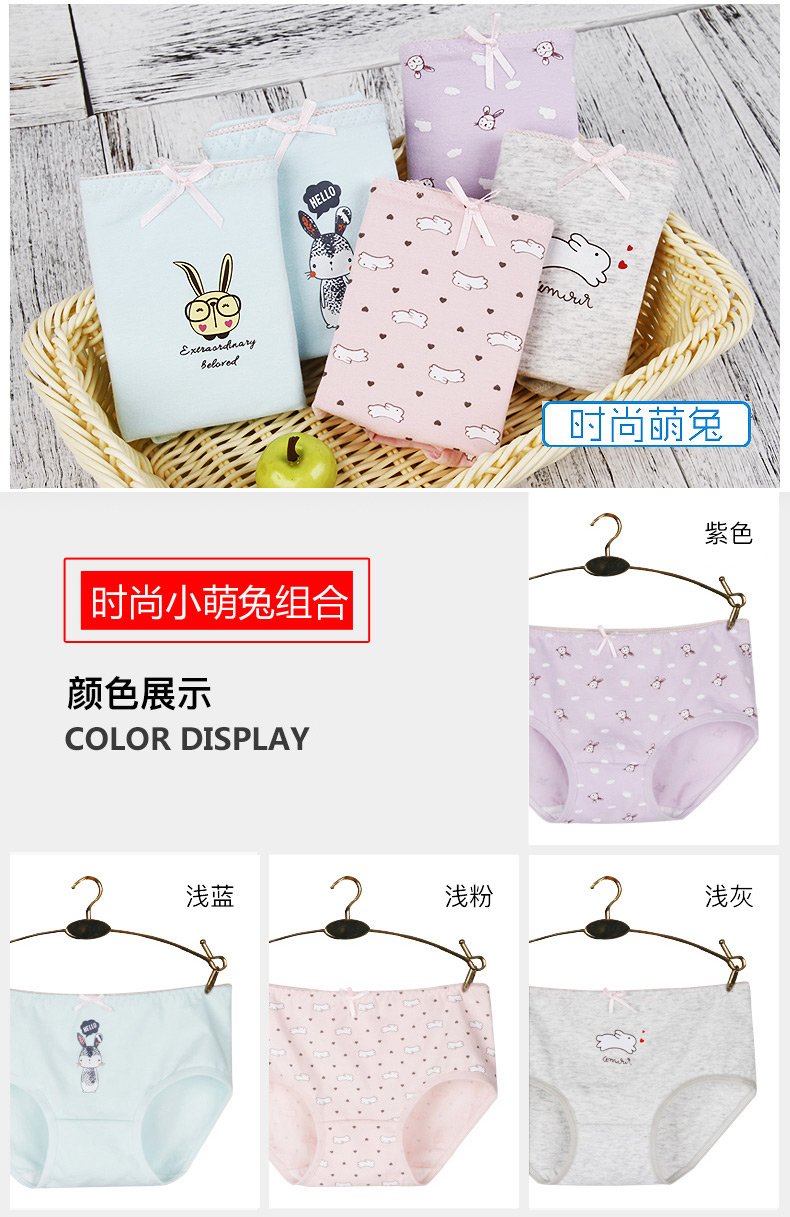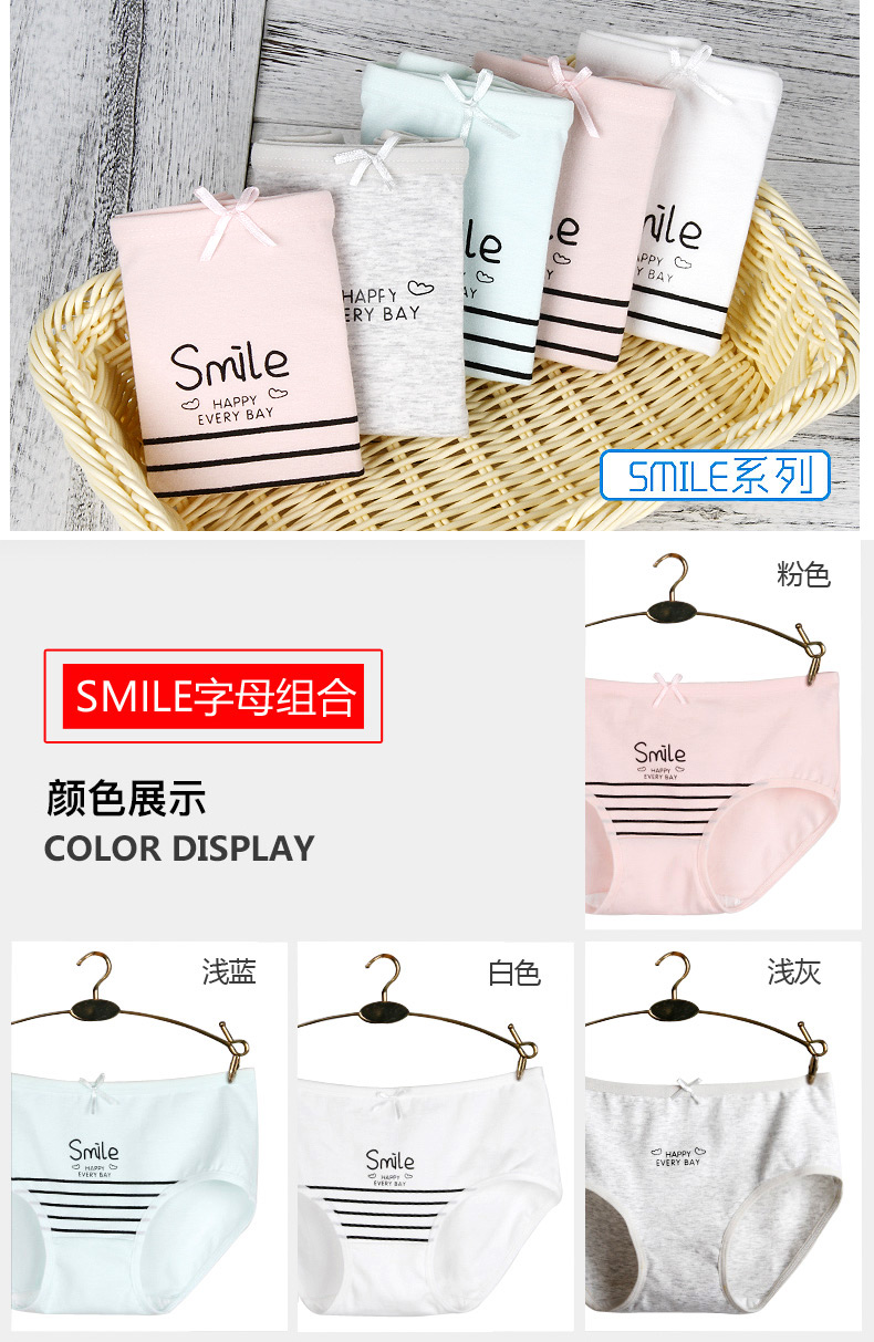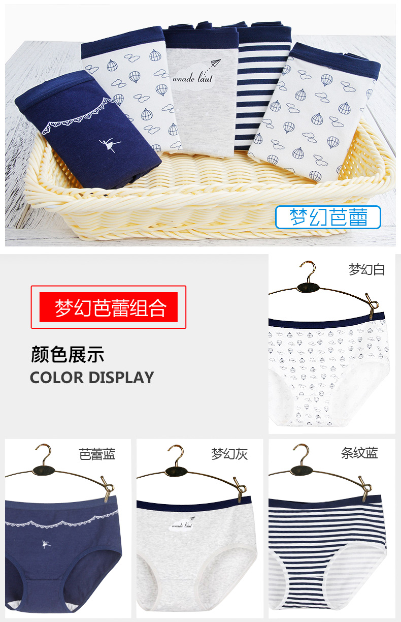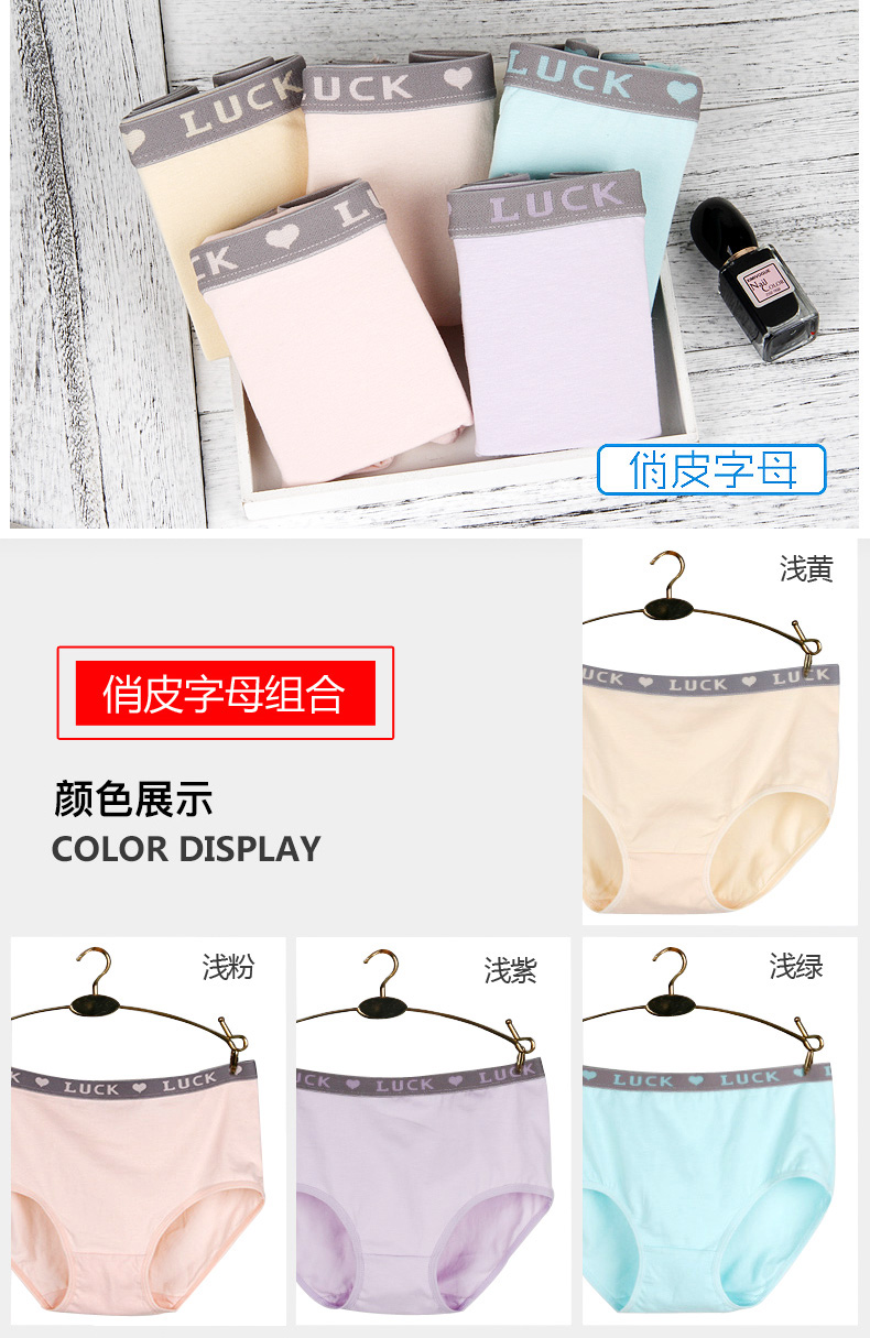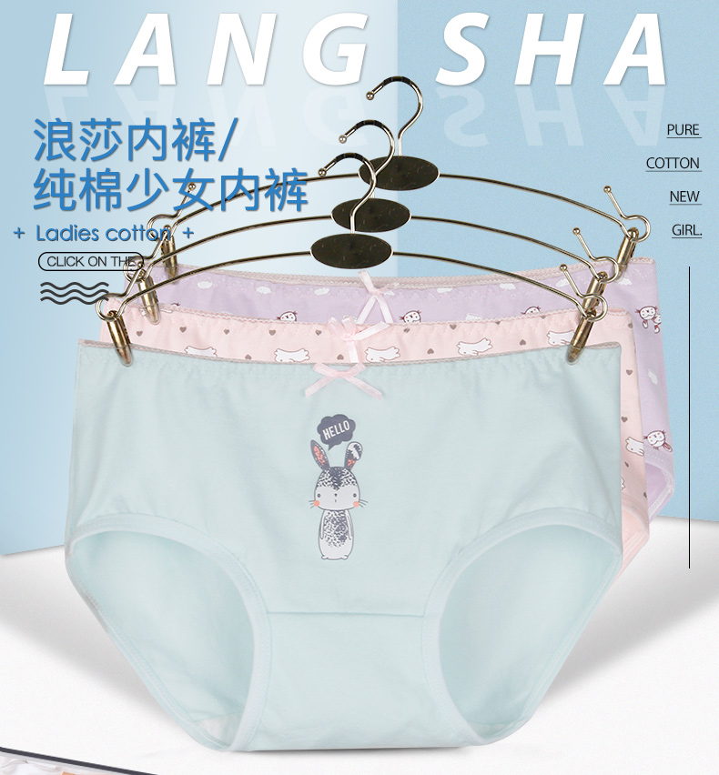 浪莎女士内裤女三角裤中腰春夏少女纯棉面料透气全棉日系女生裤衩