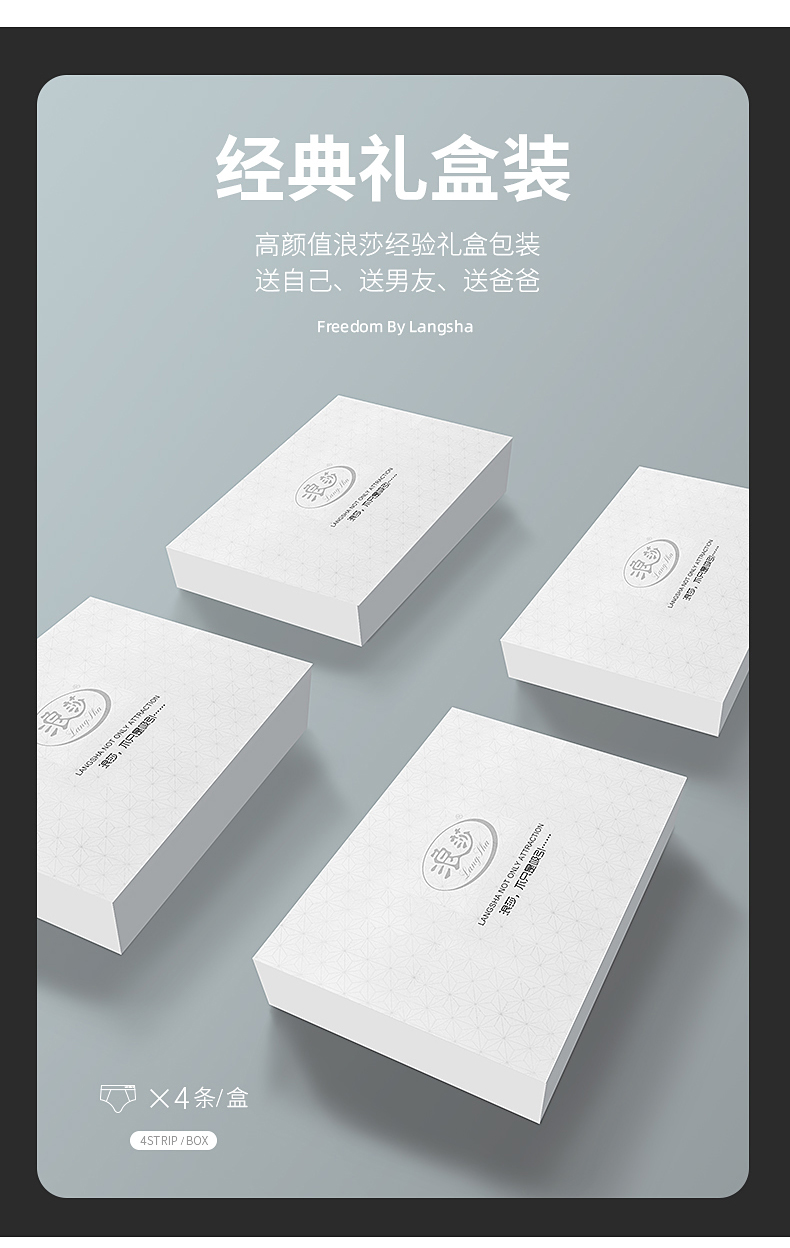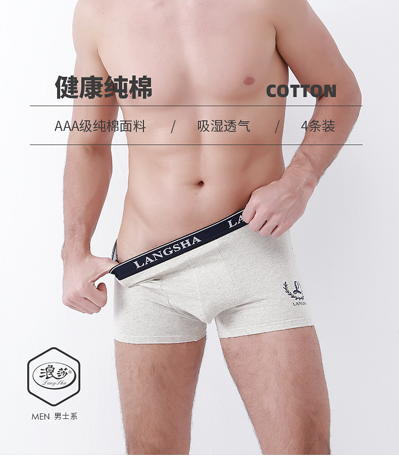 浪莎内裤男纯棉平角裤春夏透气薄款男士中腰全棉商务青年四角短裤